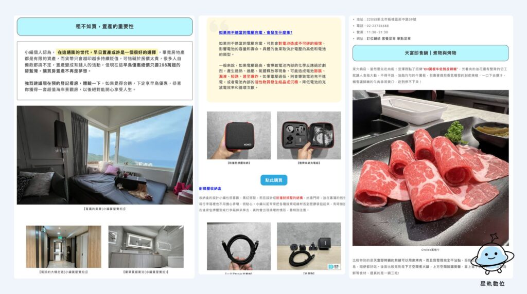 在「內容為王」的時代,原創、高品質、可讀性高的文章,正是 SEO 成敗的關鍵。星軌數位的寫手不僅熟悉 SEO 技巧,也懂得把複雜資訊轉化為易讀、專業、吸引人的文案 — 讓網站不只是「給搜尋引擎看」,也是真正對「人」有價值。